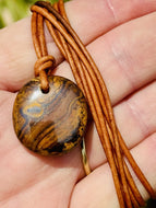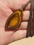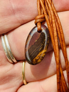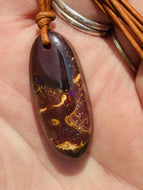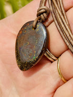 Handcrafted Australian Boulder Koroit Opal Genuine Leather Cord Necklace W/Flash